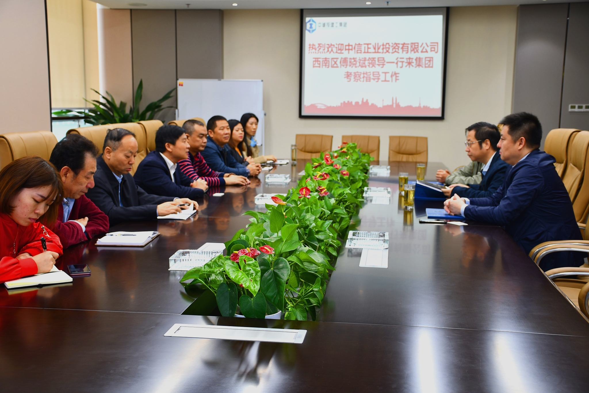 10月24日,中信正業控股有限公司西南大區負責人傅曉斌一行來集團公司考察交流。集團公司董事長郭代軍、總經理張輝、副總經理