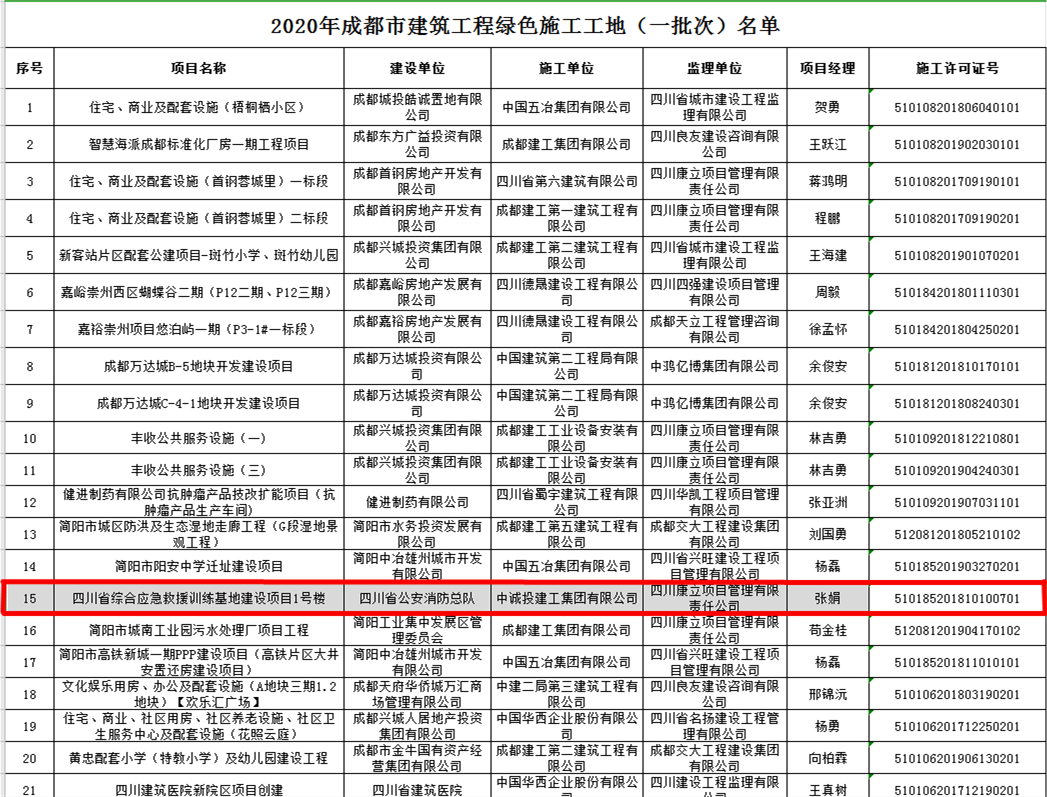 近日,在成都市住房和城鄉建設局關于表彰2020年度成都市建設工程安全文明工地和綠色施工工地(一批次)的項目入選名單中,由集團公司承