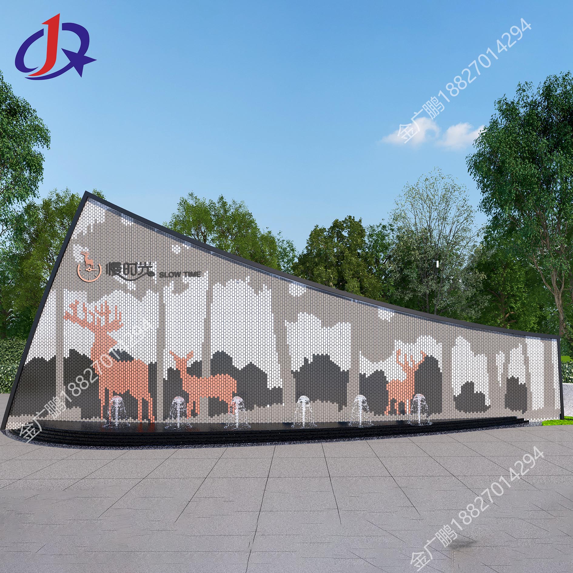 三只小鹿風(fēng)動景墻