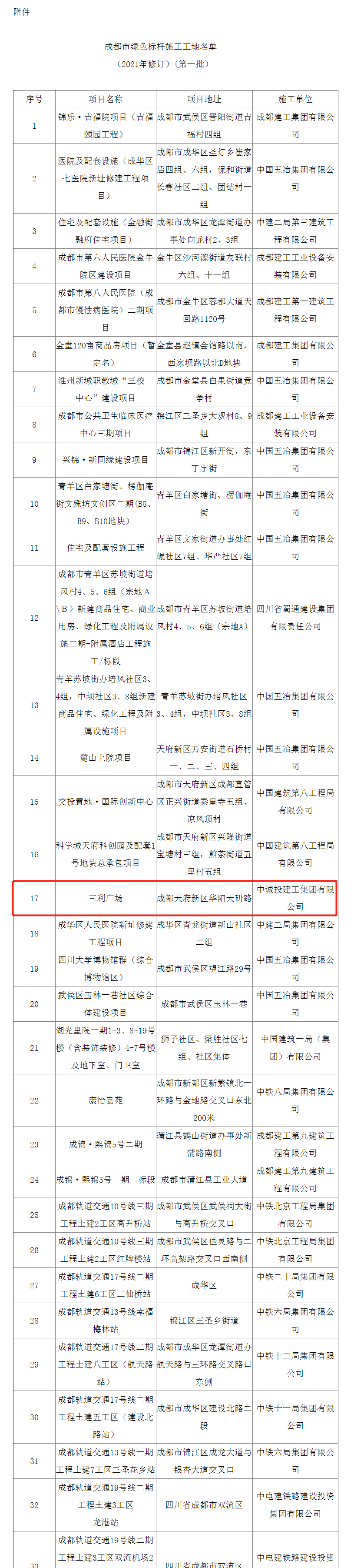 日前,成都市住房和城鄉建設局公布了成都市綠色標桿施工工地名單,由集團公司承建的三利廣場項目榮獲“綠色標桿施工工地”稱號。