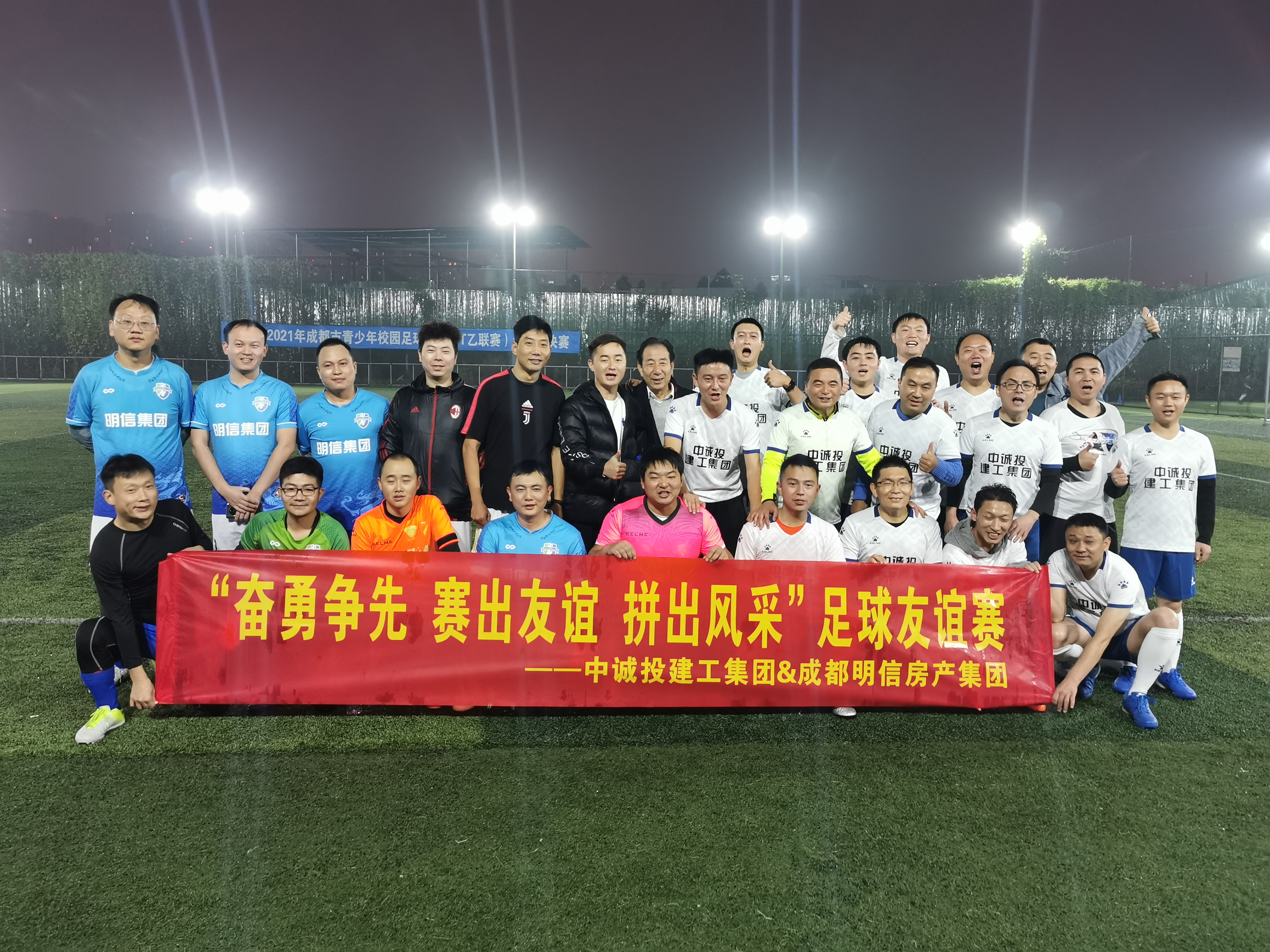 為加強與友好合作單位的互動交流,豐富職工文體娛樂生活,培養團隊精神。11月18日下午,集團公司足球隊與成都明信房產集團足球隊進行了一場精彩紛呈的友誼賽。集團公司副總經理、工會主席張阜文帶領足球隊員們積極參賽。