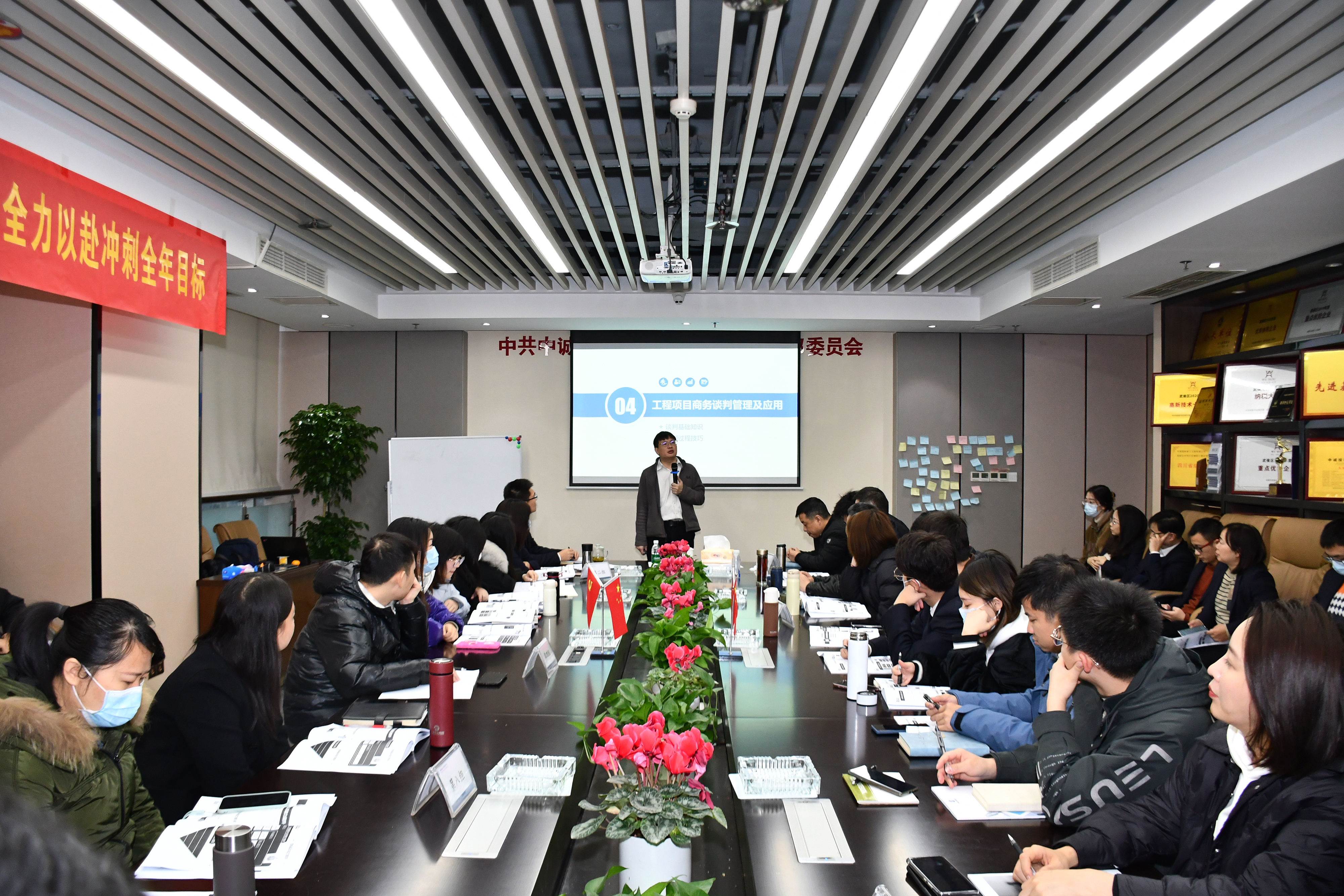 為進一步提高員工的業務水平,增強企業的核心競爭力。12月25至26日,在2021年度員工集中培訓中,集團公司邀請工程項目營銷管理專家肖維博士開展了一堂精彩紛呈的工程項目知識專題課,集團公司中高層領導成員及相關業務人員參加了培訓課程。