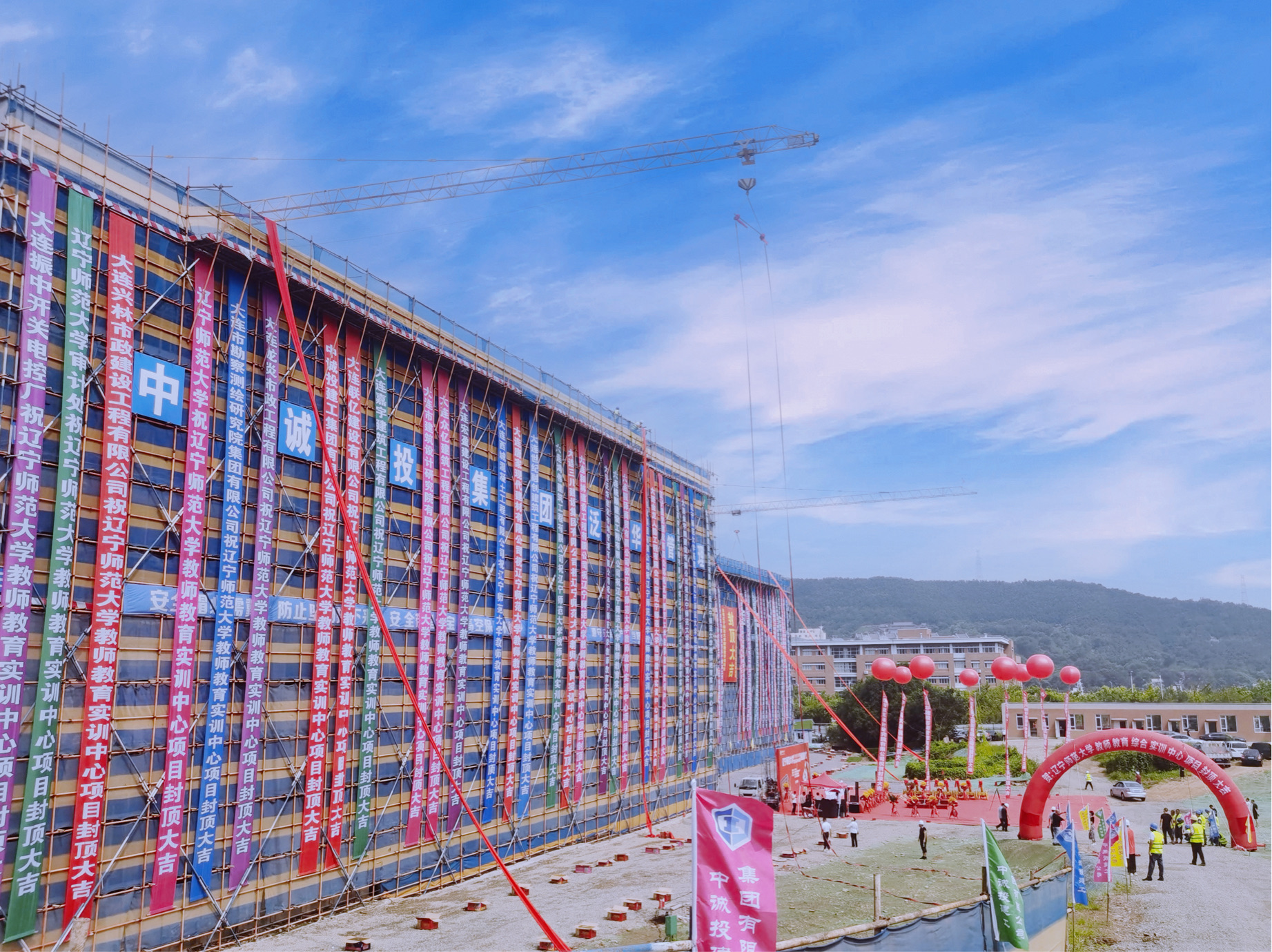 8月5日上午,隨著最后一方混凝土澆筑到位,中誠投建工集團(tuán)遼寧分公司承建的遼寧師范大學(xué)教師教育綜合實(shí)訓(xùn)中心項(xiàng)目主體工程順利封頂。