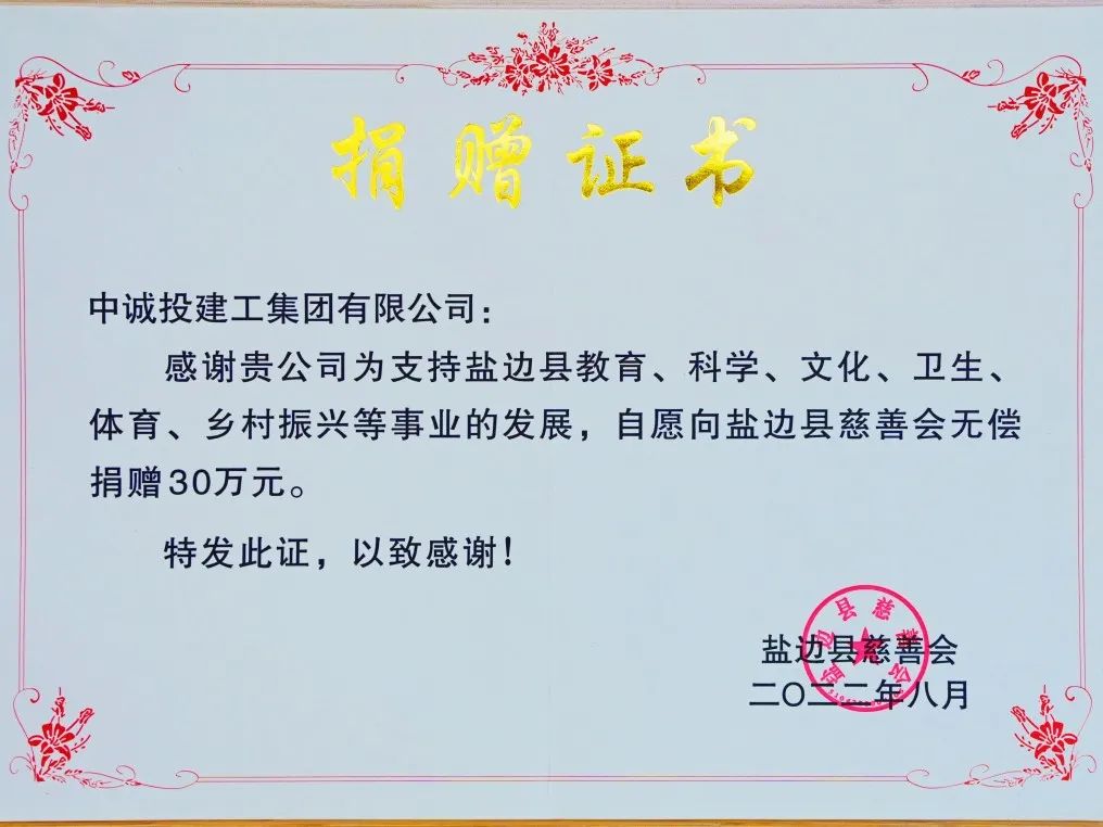 近日,攀枝花市鹽邊縣舉行了鄉(xiāng)村振興慈善基金捐贈(zèng)暨“大笮雄鷹 若水春風(fēng)”教育勵(lì)志幫扶基金發(fā)放活動(dòng),中誠(chéng)投建工集團(tuán)向鹽邊縣慈善會(huì)捐贈(zèng)30萬(wàn)元,用于支持鹽邊縣教育、科學(xué)、文化、衛(wèi)生、體育及鄉(xiāng)村振興等事業(yè)的發(fā)展。