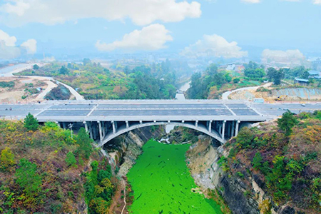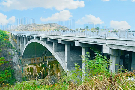 資中縣鳳凰大道東段市政道路工程是2021年內江市重點工程,連接資中經開區、水南鎮和明心寺鎮。該項目于2021年3月正式進場施工,起于鳳鳴路,止于九龍峽橋,全長1.3公里。九龍峽大橋是整個鳳凰大道全線上重要的節點橋梁工程,大橋全長146米,寬41.5米,路面為雙向八車道通行,雙側設置了5米人行道。