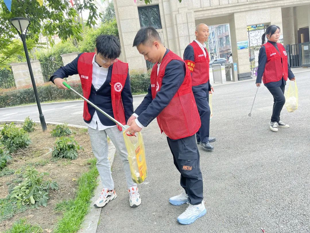 隨后,全體同志穿上紅馬甲,戴上紅袖章,在社區(qū)工作人員的引導下,迅速分為兩個小組,分別進入到七里社區(qū)居民點,對小區(qū)道路、綠化帶進行了“地毯式”清潔。大家彎著腰,拎著垃圾袋,一邊撿拾散落在道路和草坪的垃圾,一邊對隨地吐痰、亂扔垃圾、亂堆亂放等不文明行為進行勸導,引導居民自覺踐行文明行為,主動為創(chuàng)建文明典范城市、喜迎大運會營造良好的環(huán)境和氛圍。同時,大家還一起動手,將小區(qū)門口的共享單車進行規(guī)整擺放,為居民使用單車提供便利。