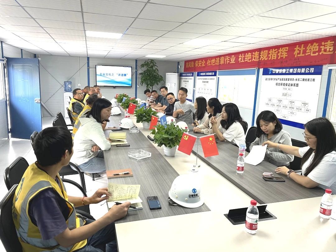 各檢查小組深入施工一線,對項目的進度、質量、安全、綠色施工等方面進行了全面檢查。通過實地查看、測量,與項目負責人溝通交流、查閱內業資料等方式,檢查小組充分了解項目情況和面臨的困難后,對存在的問題進行現場點評,同時給予具體的指導和整改意見。