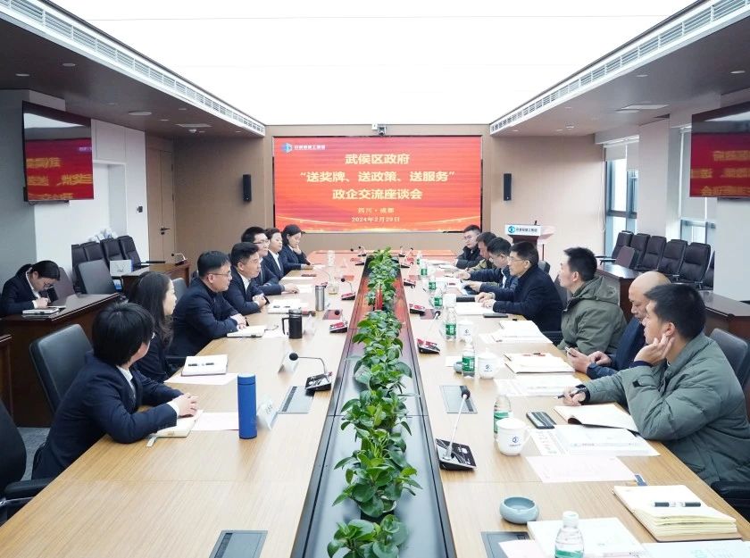 2月29日,成都市武侯區檢察院檢察長伍健、區住建交局副局長廖海豐、漿洗街街道辦主任張承思等領導一行蒞臨中誠投建工集團調研指導,并召開政企交流座談會。集團公司董事長郭代軍、常務副總經理張阜文、副總經理彭波峰、董事長助理丁小英等參加座談會。
