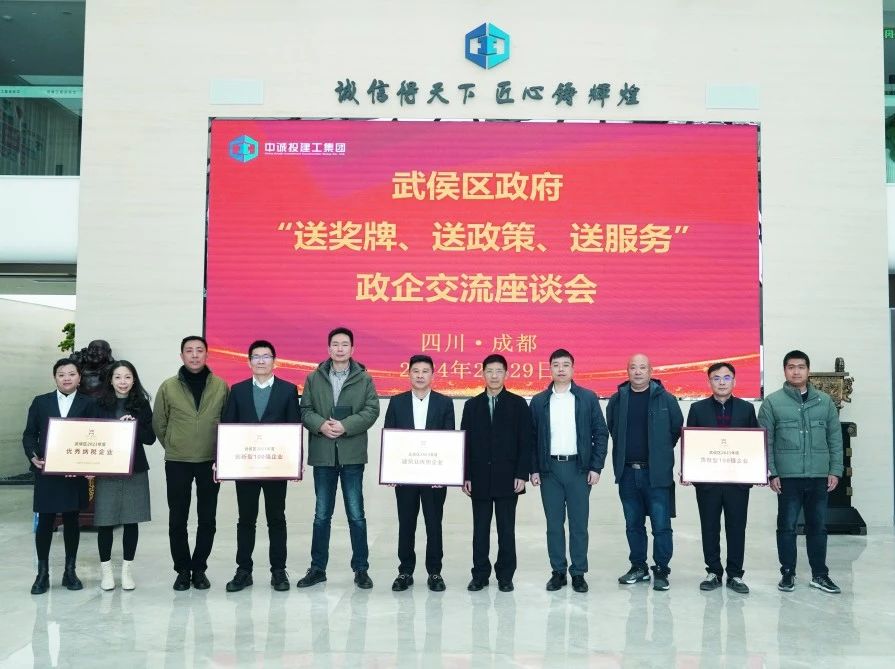 會后,調研組領導分別為中誠投頒發了武侯區2023年度“建筑業優勢企業”“創新型100強企業”“貢獻型100強企業”“優秀納稅企業”四項榮譽獎牌。