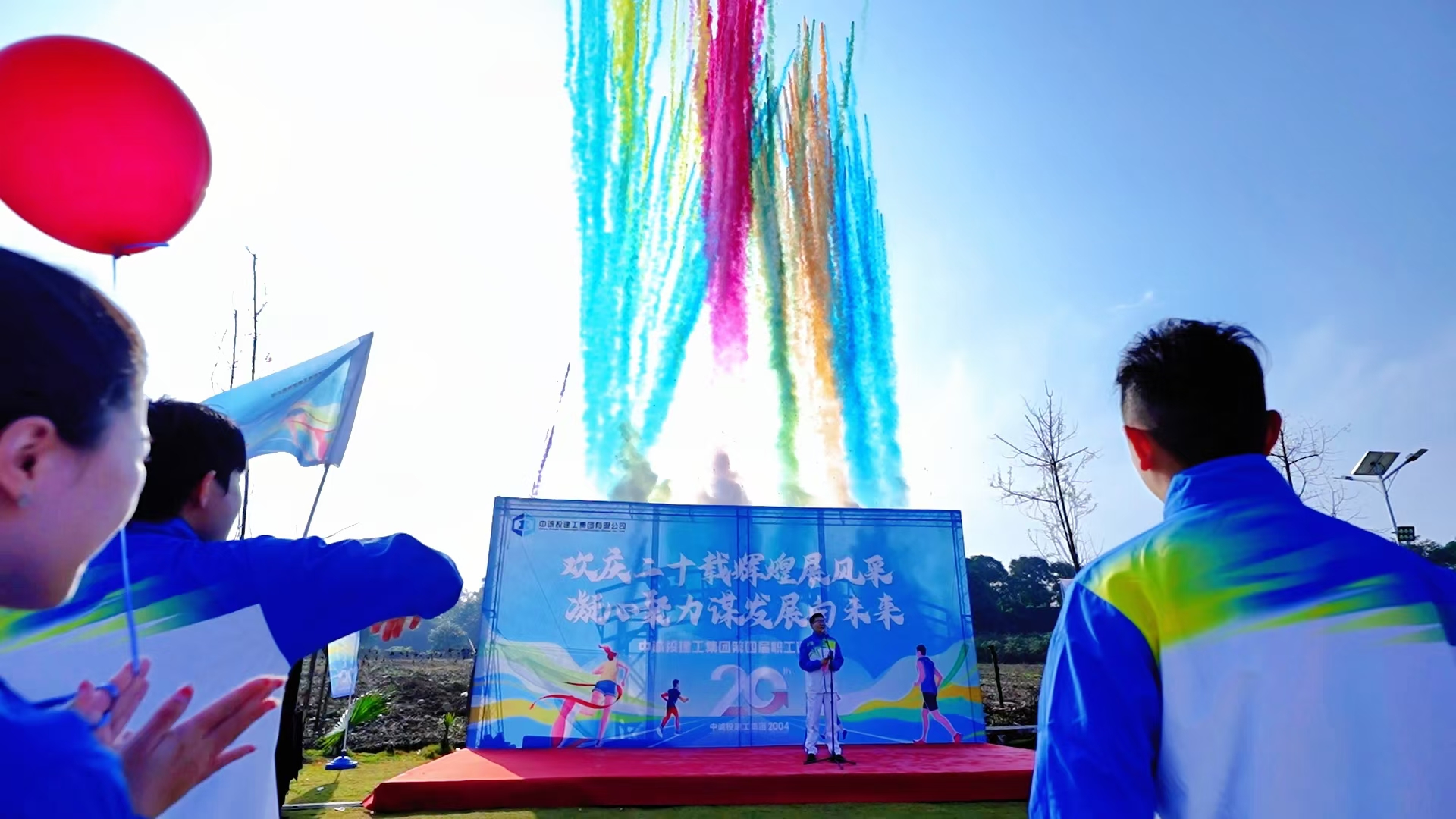 當常務副總經理張阜文鄭重宣布“中誠投建工集團第四屆職工運動會正式開幕”時,象征著美好祝福的彩煙與氣球一同騰空而起,運動會現場瞬間變為一片五彩斑斕的夢幻世界。全體運動員的驚嘆聲與歡呼聲相互交織,現場氣氛被推向高潮。
