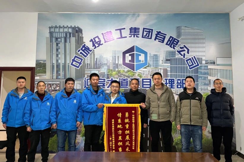 近日,成都東部新區石板凳街道辦事處將一面繡有 “情系地方顯擔當 勇挑重擔展風采” 的錦旗鄭重送至中誠投建工集團迎賓大道項目部,以表彰項目部在當地基礎設施改善、社區文化建設及公益事業推進中所作出的貢獻。路橋公司總經理張德斌代表集團公司接受錦旗,并參加座談交流。