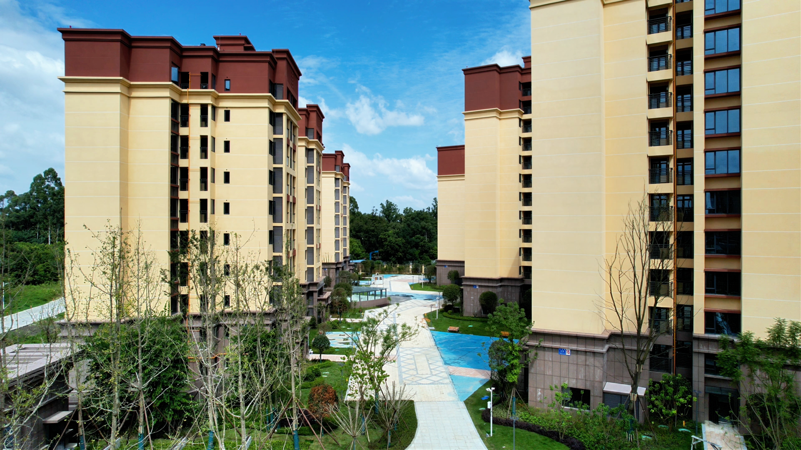 小區外立面采用統一的淺黃色與紅棕色搭配,簡潔大氣。步入小區,一幅“宜居畫卷”緩緩展開。中庭草坪綠草如茵,各類灌木錯落有致,宛如天然氧吧;休閑區域鋪設了彩色塑膠地面,健身器械區與景觀步道相連,為老幼居民提供了便捷的活動空間。這種“綠化+休閑”的空間設計,不僅使小區環境井然有序,更實現了從“有居”到“優居”的品質提升,讓居民在家門口就能享受優質普惠的公共服務。